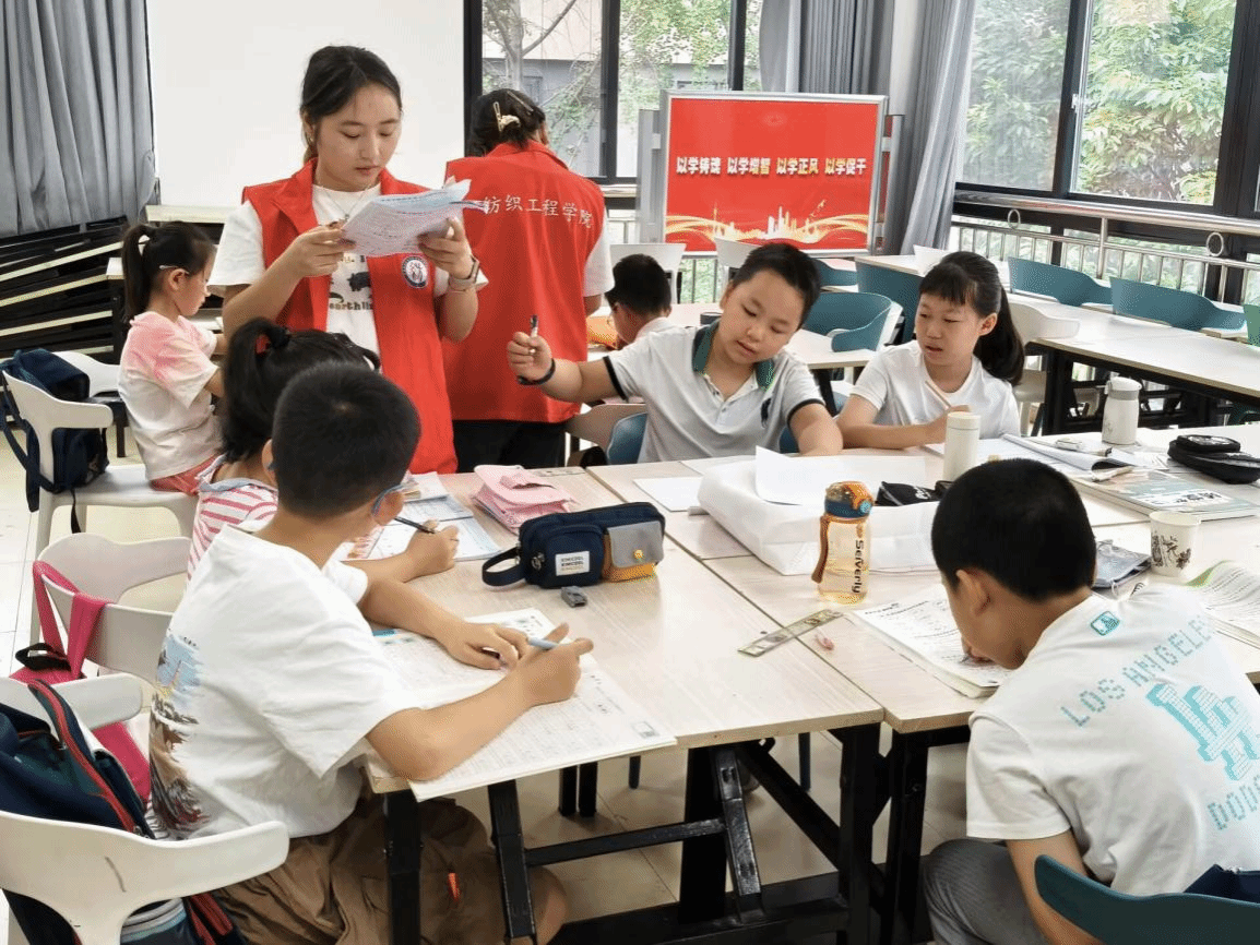 志愿者们耐心细致辅导孩子们写作业,从解题方法的拆解,到写作思路的引导,再到暑期作业的进度梳理,整个辅导过程既有序又温馨。小朋友做题遇难题时,志愿者引导他们“像红军过草地找出路,咱们一起读题、画图解决。” 分心时提醒:“学红军专注打仗那样,专心才能攻克难关。”以长征关卡类比学习难题,引导小朋友像先辈那样直面挑战,培养 “不放弃” 的成长信念。