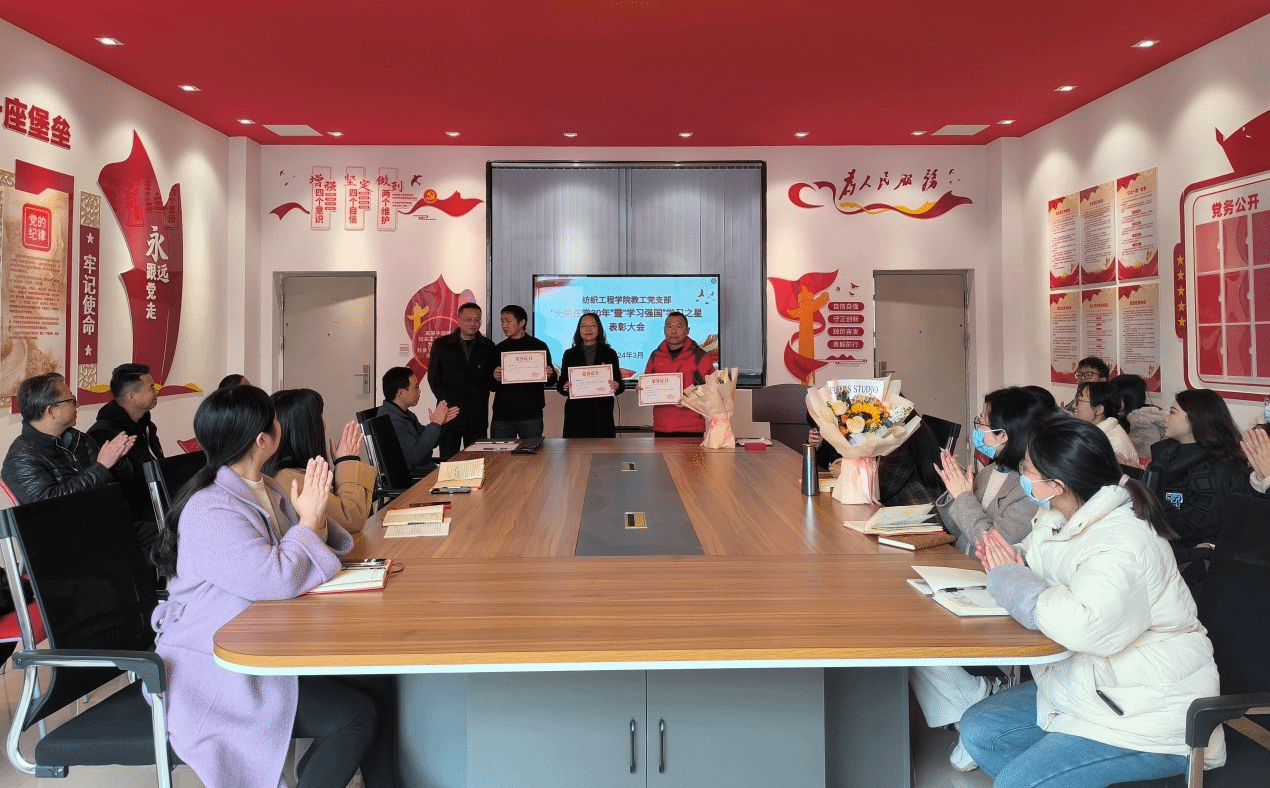 为进一步激发支部党员深入学习习近平新时代中国特色社会主义思想主动性和积极性,教工党支部组织开展2023年度“学习强国”学习平台“学习之星”评选活动,共评选出3名“学习之星”。陈绍芳宣读了“学习之星”表彰名单,党总支书记谭林为受到表彰的个人颁发证书。