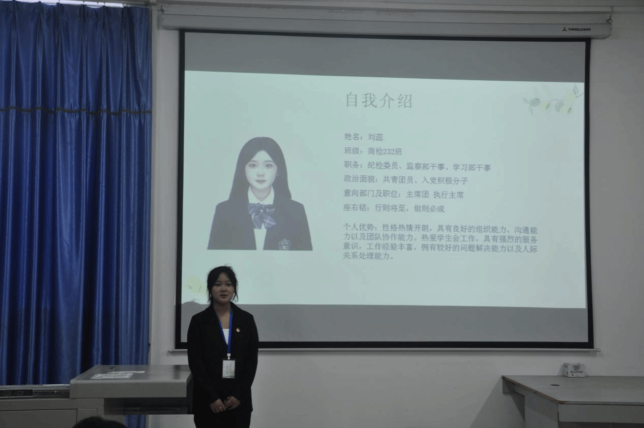 通过前期公司2023级各班级积极推荐、同学们自愿报名、资格审查、笔试考核等环节,最终确定58名候选人参加竞选演讲环节。58名候选人分别从个人简介、工作优势、未来规划、现场回答等方面展开演讲,充分表达了自己对员工干部竞选的坚定决心和对员工会未来工作的思考。面对老师们,主席团成员以及各部门干部的提问,大部分后备干部都能从容不迫回答,提出合理合情的解决方案。