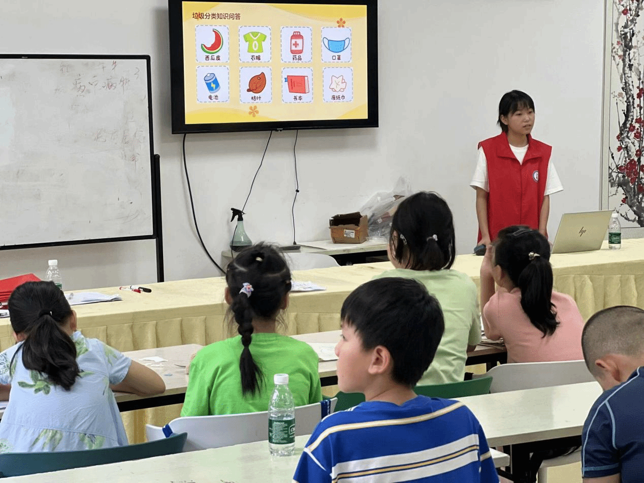 志愿者开展了以“‘圾’时行动,绿色‘童’行”为主题的志愿者服务活动。通过观看两个有关垃圾分类的科普视频,带领小朋友认识垃圾分类的重要性和意义。