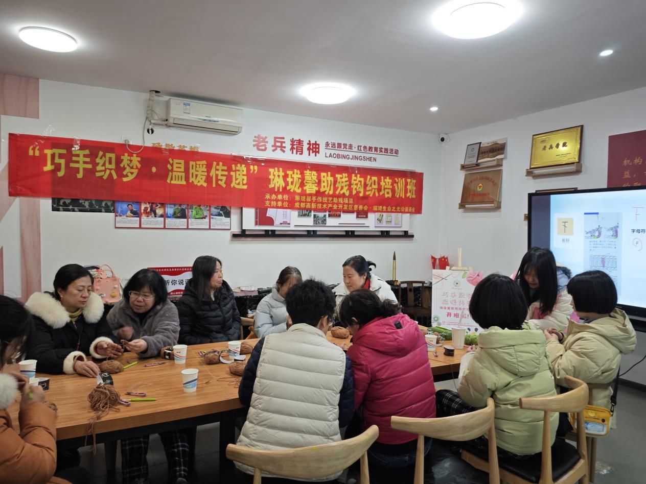 3月16日下午,“琳珑馨”助残志愿服务团队在成都市郫都区一里桥社区开展了第一期助残钩织课程培训。本次活动由成都市郫都区新时代文明实践中心主办,由成都高新技术产业开发区慈善会·瑞琦生命之光公益基金支持,琳珑馨手作技艺助残就业创业公益团队和一里桥社区联合承办。通过钩织技能培训,旨在帮助更多残友及家庭妇女掌握一技之长。