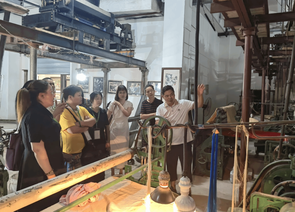四川润茂丝绸有限公司副总经理苏明利向学员介绍锦门小镇的基本情况和蜀锦蜀绣发展面临的机遇和挑战。跟随四川丝绸之路博物馆副馆长马晓侠的脚步,学员走进这一目前西南地区唯一以“丝绸”为题材的专业博物馆,通过参观“丝路馆、织造馆、修复馆、桑蚕馆和时装馆”五大馆藏,以及聆听丝绸工艺进步、丝绸文化与社会生活、现代丝绸生产等各方面的介绍,共同领略巴蜀丝绸文明之光,沉浸式体验南方丝绸之路的千年魅力。